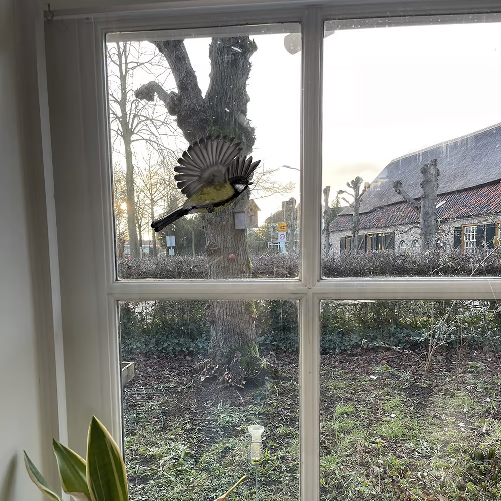 Plak deze sticker aan de buitenkant op het raam en het raam weerkaatst niet langer de lucht en vogels zullen zien dat er wat zit. Als u weet dat dat bij bepaalde ramen nooit het geval is kunt u ze natuurlijk ook aan de binnenkant plakken. Ze zijn hoe dan ook: decoratief en zien er prachtig uit!