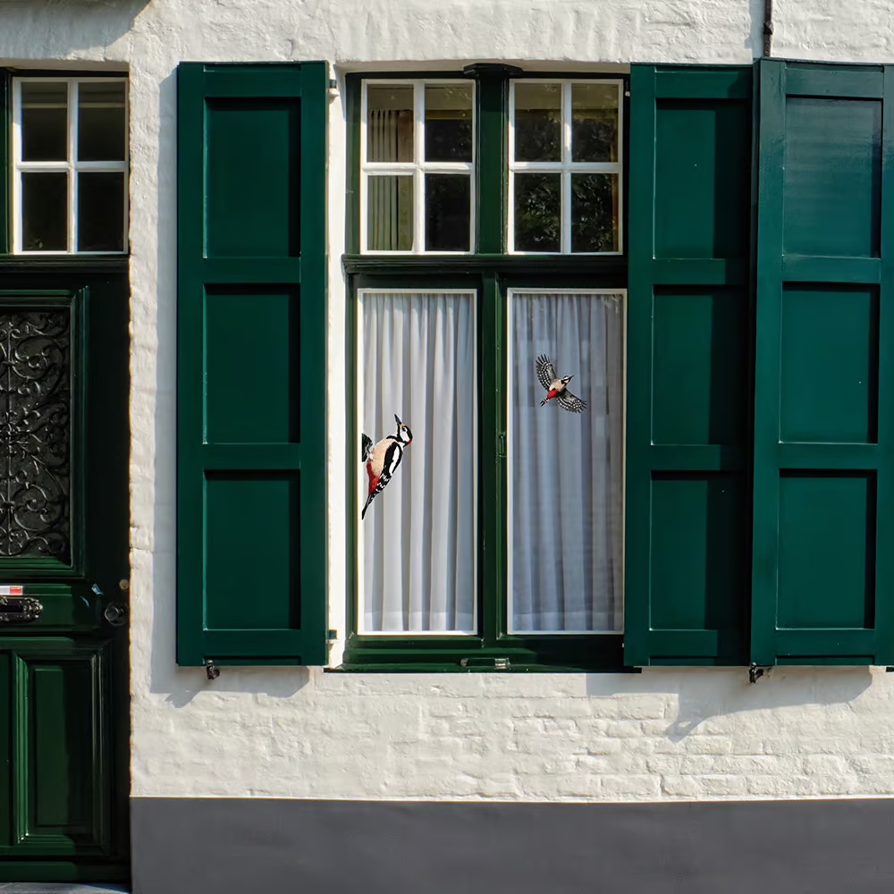 Deze dubbelzijdige raamstickers verbreken de weerspiegeling zodat vogels zien dat ze daar niet heen kunnen vliegen. Deze stickers zijn helemaal nieuw en uniek in de wereld!